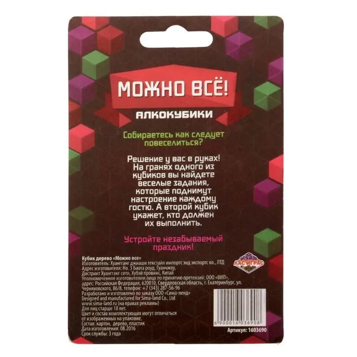 Купить кубик "можно все", алкокубики для принятия решений от 60 руб. с доставкой до пункта выдачи в Сортавале. Интернет магазин ДекаМаркет. Оплата при получении.