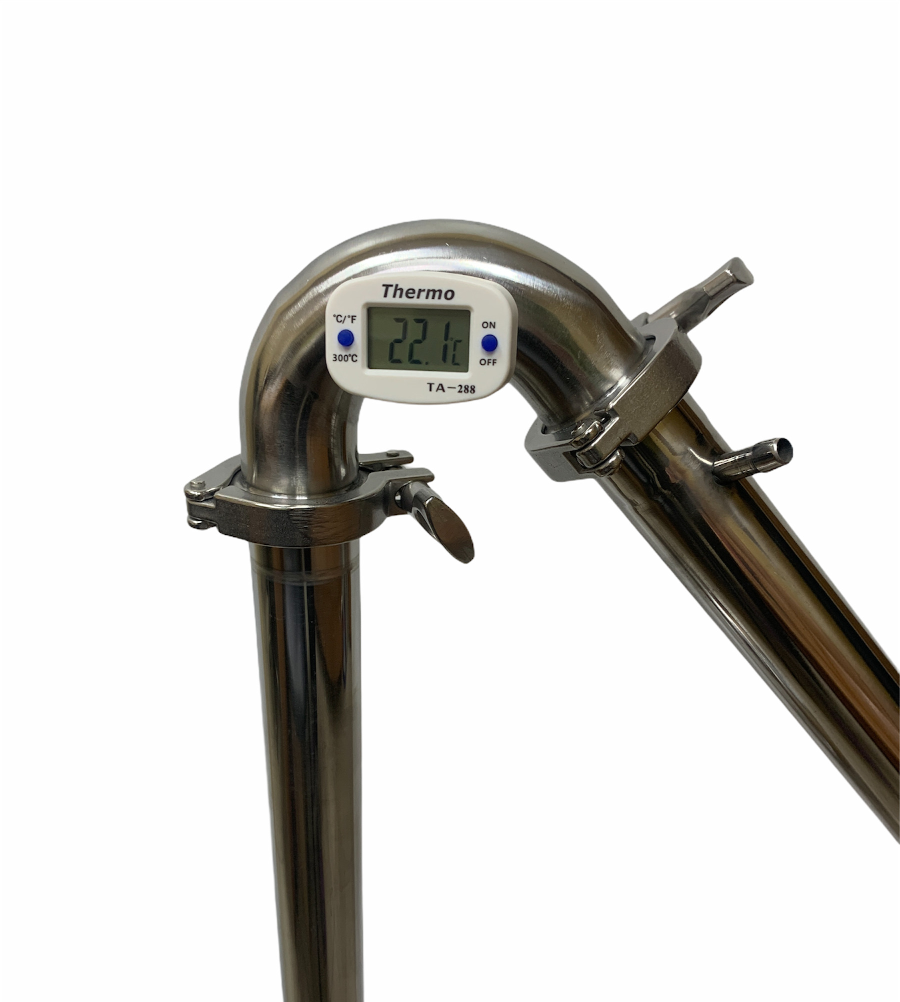 В верхней части дистиллятора, в зоне пара, установлен цифровой термометр.