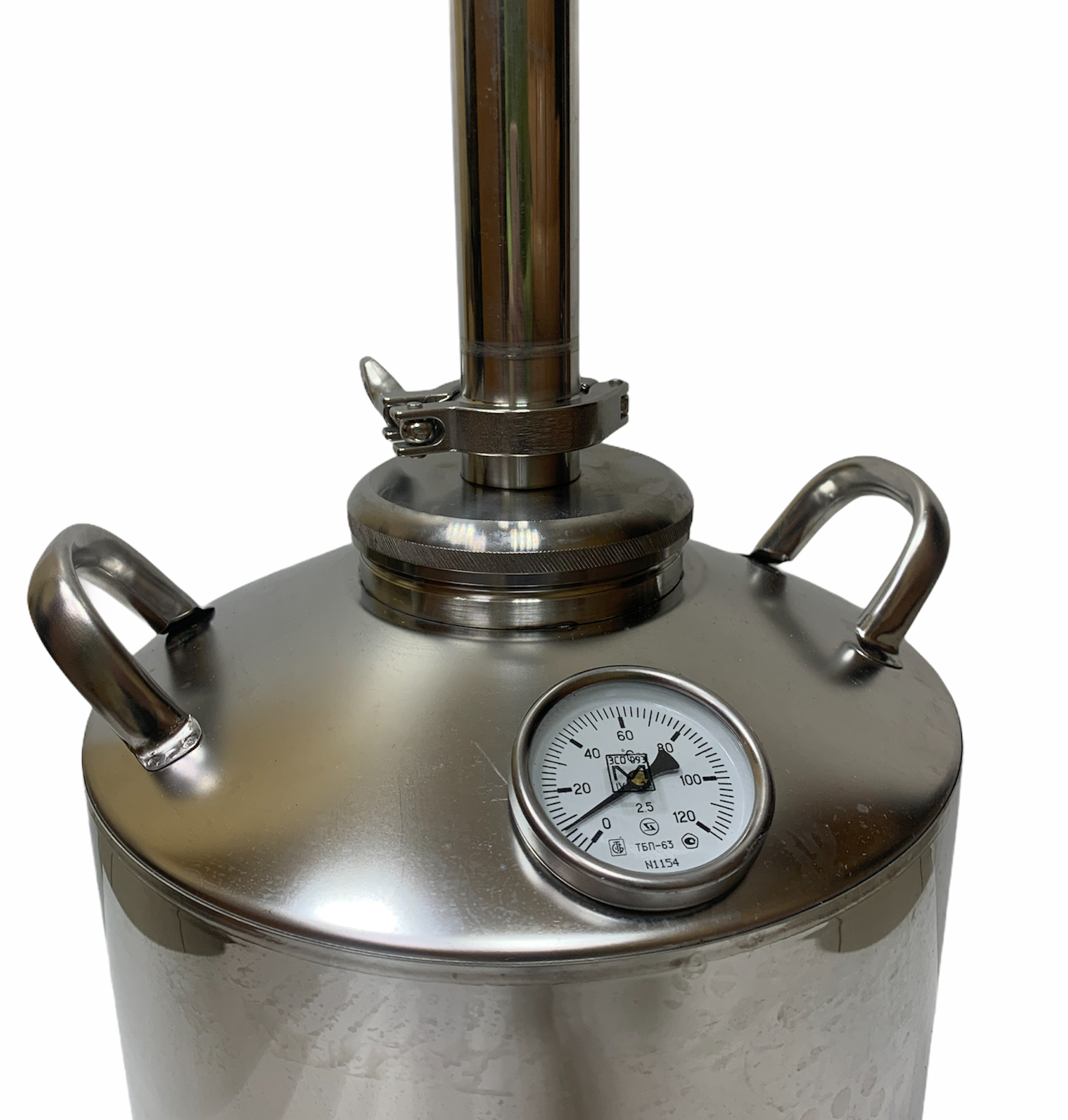 Для повторной дробной перегонки в куб установлен встроенный биметаллический термометр, при помощи которого осуществляется контроль температуры.